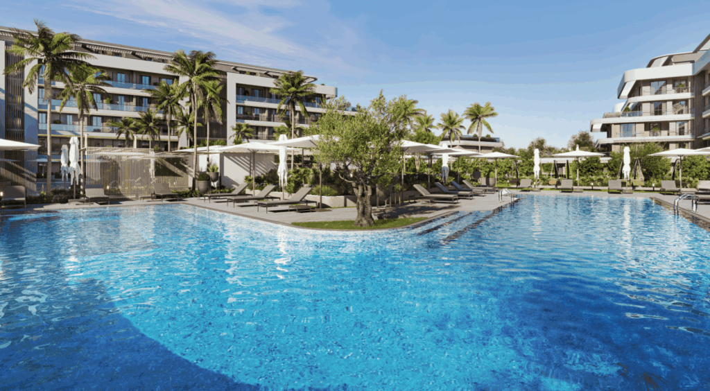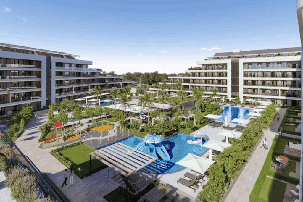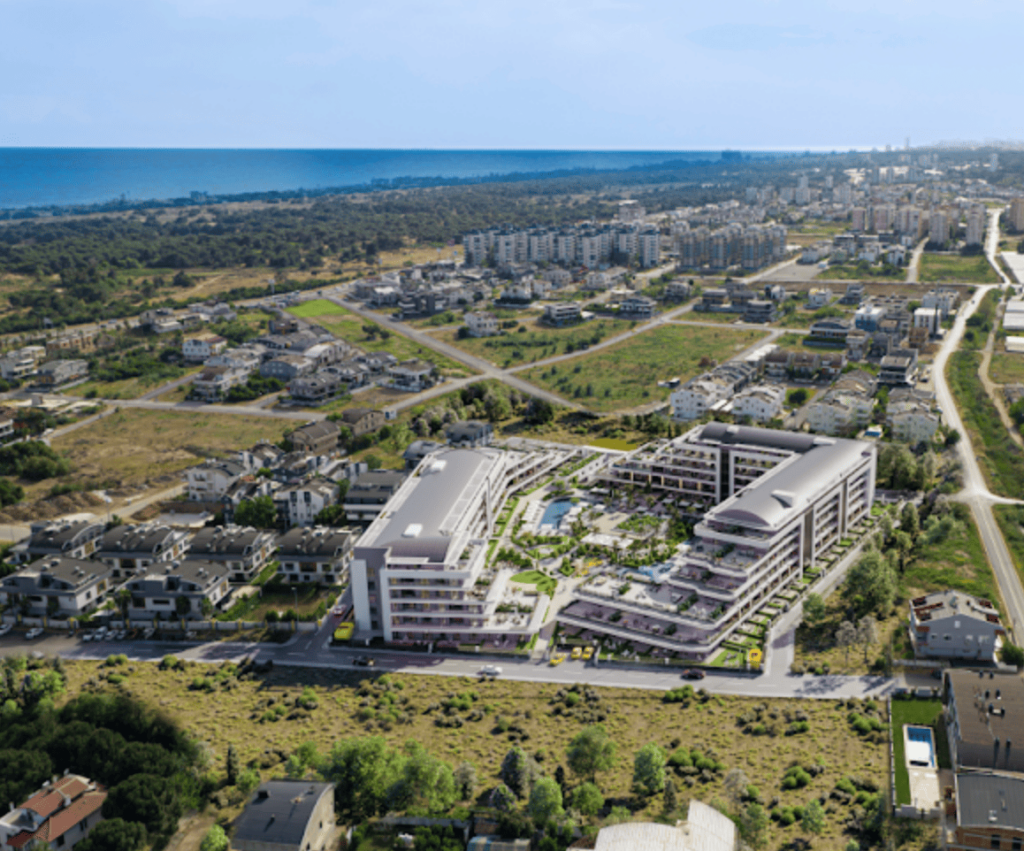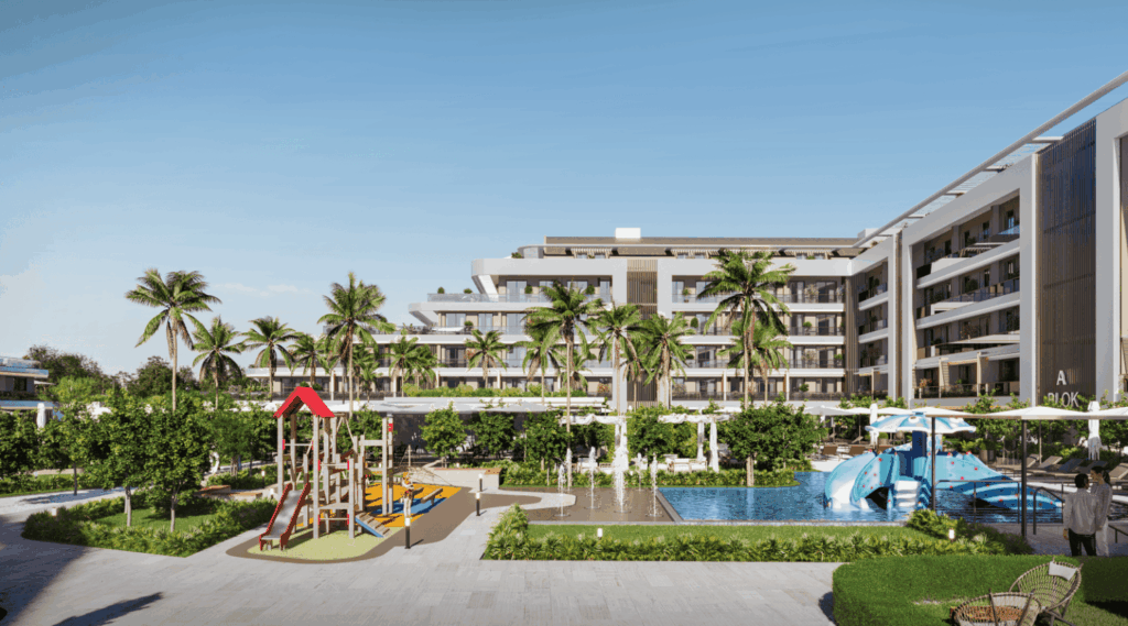 Das Projekt besteht aus zwei Blöcken und bietet 1+1, 2+1 und 3+1 Wohnungen im 365-Tage-Urlaubskonzept.