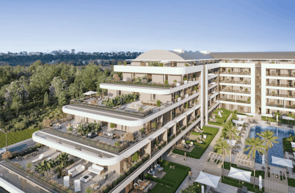 n unmittelbarer Nähe zum Meer, zu Stränden, 5-Sterne-Hotels und dem Flughafen gelegen, überzeugt mit einer naturverbundenen Architektur.