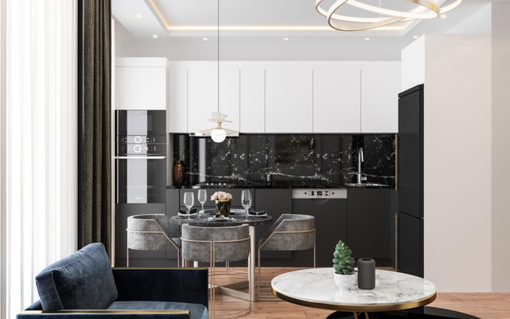 • High-gloss kitchen cabinets