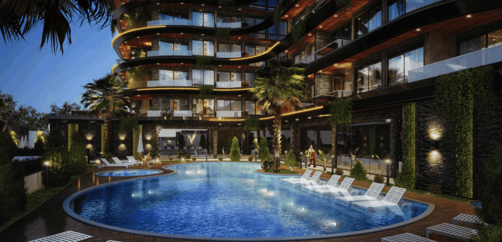 Located just 230 meters from the sea, this prestigious complex combines modern comfort with a 5-star hotel concept. The project consists of 46 apartments, including 1+1, 2+1 duplexes, and 2+1 duplexes with private pools and terraces.